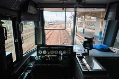 鶴岡以南ではトンネルが多いので前面展望はすべて中止です。 折角こんな構造に作ったのだからせめて助士席側だけ開けておけば良いのに・・・