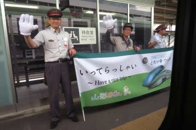 見送りを受けながら発車です。 寝台列車廃止に突き進むJRですがジョイフルトレインには力が入ります!