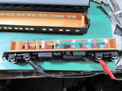 分解して点灯した上の写真で判る様に中央よりのセクションには一切光は入らず、個室も1つ置きに光が入る状態になっています。