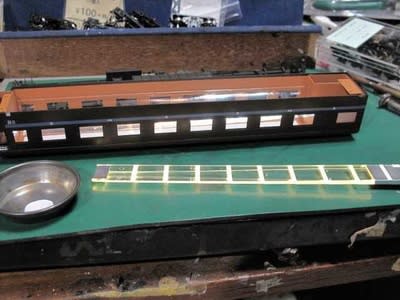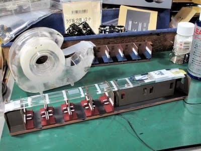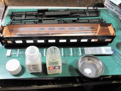 スロネ30通路側に来るパネルライト側面にクリヤで半透明にした白エナメル塗料を塗ります。