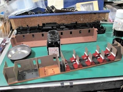 床もよく見えてしまうので黒っぽいエナメル塗料で床らしくします。