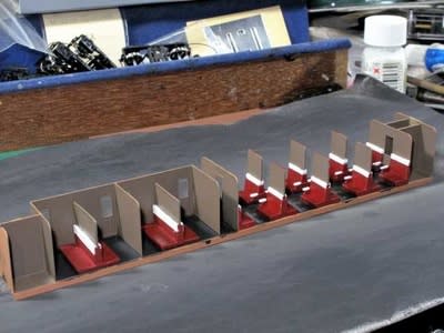 二人用個室の個室部分は仕上が悪かったのでプラバンによる仕切り+IMONハネ用椅子の組み合わせに直す事にします。
