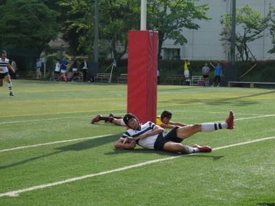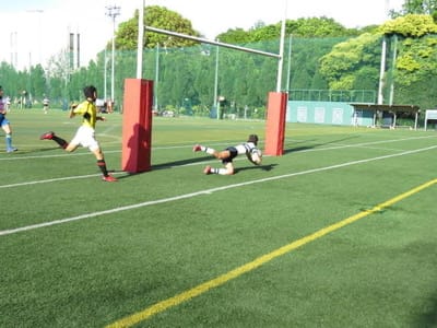 1年田崎君のトライ! 中等科は一昨年関東大会に進んでいます。 東京都最後の対戦相手は慶應義塾中等部、劇的な逆転勝ちだったそうです。 関東大会でも1勝しました。