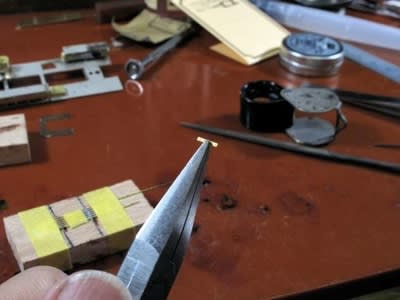 ピンセットで上下から押さえながらハンダ付けします。