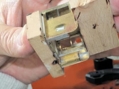 北海道の特徴のひとつ、キャブ後ろ側の手摺を付けます。 今回は穴径0.35mm。