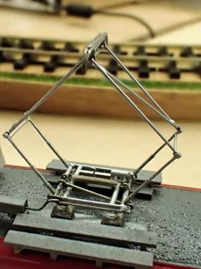 歩道橋の下側は架線が下がっており、パンタが下がりながら通過し越えると架線に合わせて立ち上がってきます。 いい感じです。
