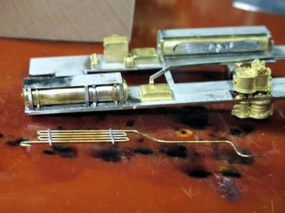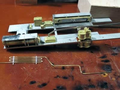 オイルポンプ箱、給油コックを付けて空気冷却管を載せてボイラーを載せた状態です。