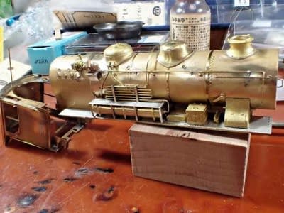 早速ボイラー/ランボードの半田付け、そして助士席側の冷却管をボイラーに沿って曲げて行きます。
