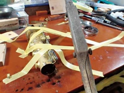 三位一体に成らなければ落ち着きませんのでキャブも「たっぷり半田」でがっちり半田付けします。