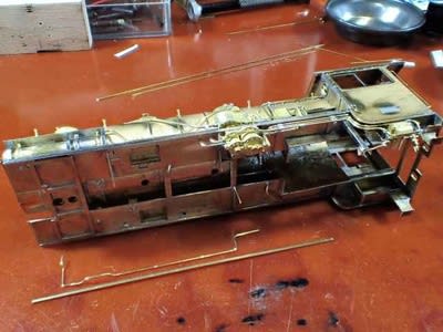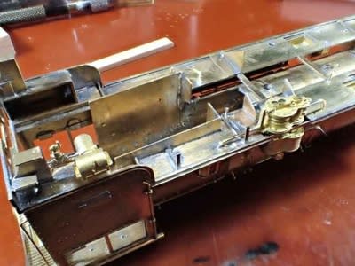 機関士側キャブ下に関わる工作は楽しく終了、最初の帯板は三段目のパイピングの直下でパチッと切られてしまうのです。