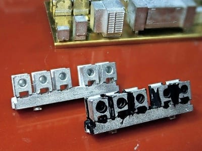 小田急1700のジャンパ栓(大2+小1)今回それを付けるにあたり、作業工程短縮でネジ止めではなく、直接ハンダ付けしてしまいます。