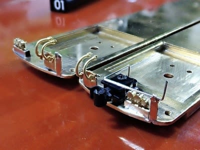 下作用式解放テコは床板に切り込み(糸鋸を切り込んですぐ横に向けてヤスリで削る感じ)入れてハンダ付け。