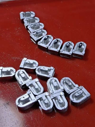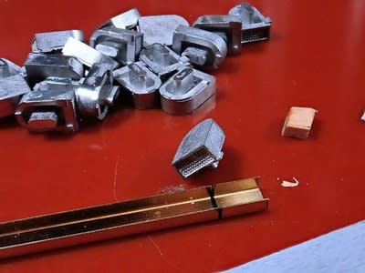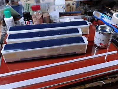 そして取付用の下の出っ張りの底辺に少し乱れが必ず付いています。 これを削って平らにしてマスキンゲテープ上に並べて塗装する事になります。
