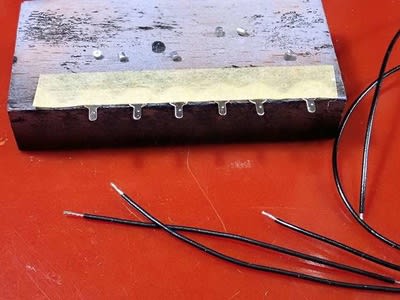 塗装など掛けるために固定=昔のウェイトにマスキングテープを切った切片でループを作って貼り付けます。