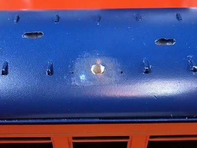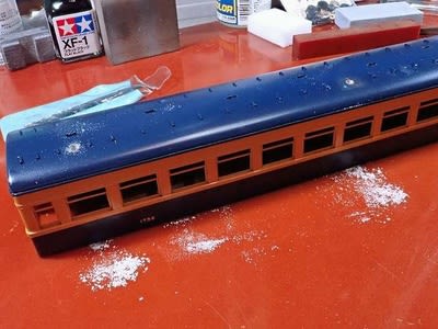 →そのあと屋根に掛からないように斜め下からフラットベースを入れたクリヤラッカーを吹きました。