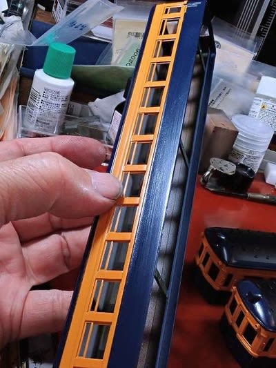 ベンチレーターはIMONの80系0番台用の押込ベンチレーター、湯口が有るのでヤスっています。 (手前半分は未作業)