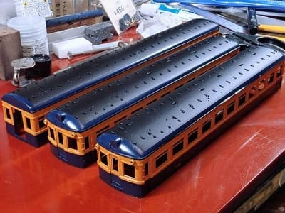 慌ててもしょうがないので塗りあがった3両を写真に撮ります。 大分肝が据わってきています・・・