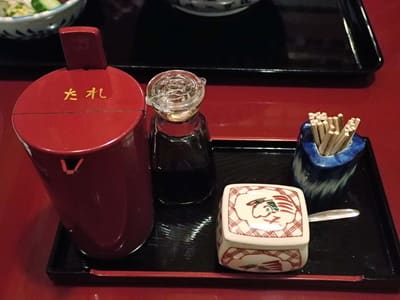 タレは自分で足すことができます。 素晴らしい! 右は山椒です。