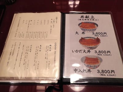 鰻重が¥2,200~¥7,200のところ、右側の「いかだ大丼」を頼みました。