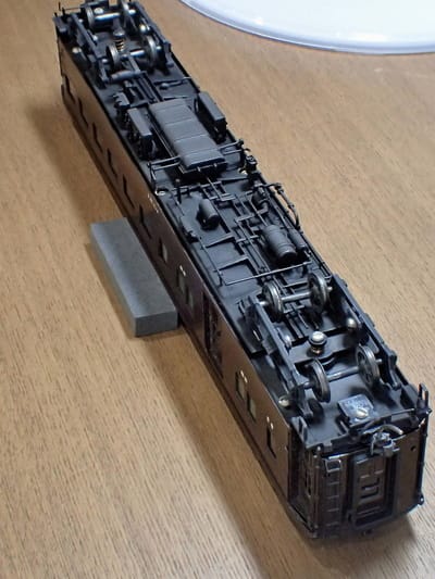 今此処に見えている車輪は私が黒染めしていますが、最初期に作られていたスパイクの車輪で、全然走れません。 直線継目で脱線します。