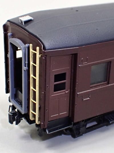 オハフ33の梯子はロストワックス一発の予定です。 幌ももちろんこれは成型色です。 実際には黒塗装されることになります。