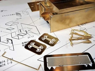 大げさなランナーの形状で目立つエッチングパーツは石炭掻き取り口脇のリベット付き帯板(?)です。