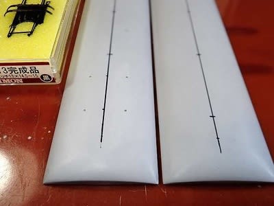 床板はKSモデルの0.5mm厚幅30mmで切り出して一部分を0.5mm厚20mm幅帯板で重ね貼りして作ります。