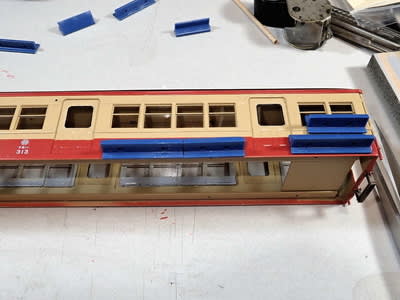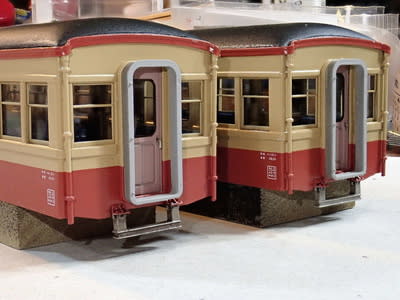 急作りですが、貫通路付近の幌、幌枠、ドアを付けました。