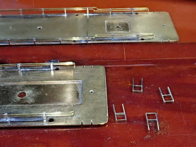 糸鋸の刃で少し切り込んだ部分にこの0.8×0.3mmの帯板から作った梯子をハンダ付けします。