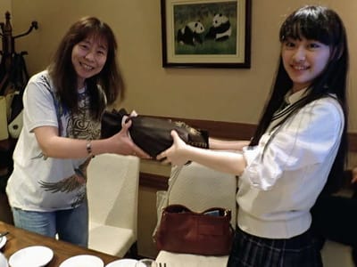 バックのパンダに合わせたポーズじゃないです。 すっぴんの方が可愛いかも。