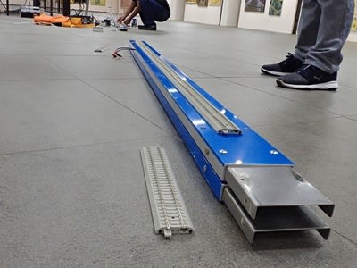 アルミチャンネルはまだ新品なので青い保護シールを被っています。 当日は綺麗な銀色のコースがお目見えします。
