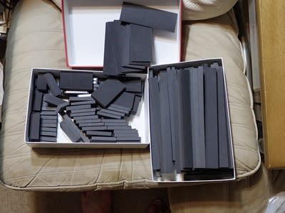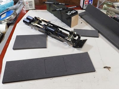 収納する箱をなんとかしなくては!ってKATOのNゲージの箱しか思いつきませんので手持ちの硬質ウレタンから適当に工面します。