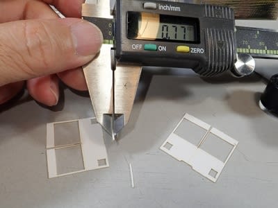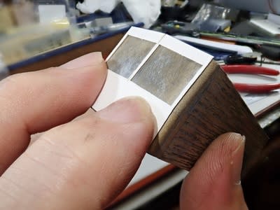 お面上部の丸まり方をこんな風にして高さ27.5mmにしてみます。 上に乗せている板は新しい車体形成板です。