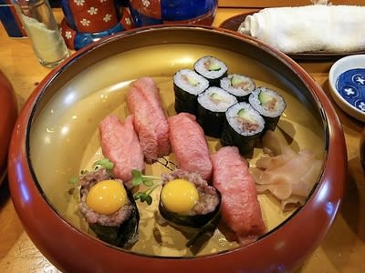 一ノ関でレンタカーに乗り、前沢へ。 前沢牛の寿司を頂きます。