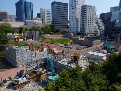 さて散歩は美竹公園跡の臨時渋谷区役所跡です。 コレは金網で囲まれていて入れません。