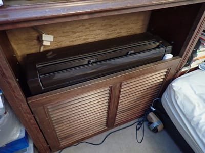 40年前の床置き型エアコンを治める囲いの中にあります。