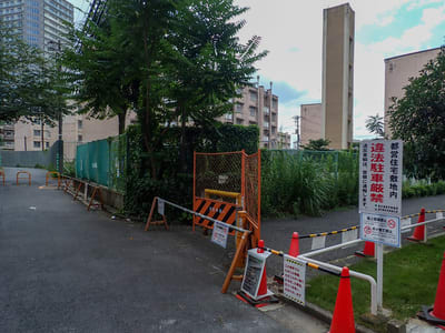 ちょっとした路地を入って見ると例の巨大な都営住宅の廃墟が広がっていました。