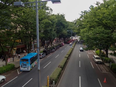 青山通り、この辺りの奥が神宮前3丁目でしょうか。