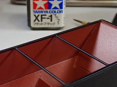 エナメルは現在多用している「XFー1」艶消黒にフラットベースを追加したものです。