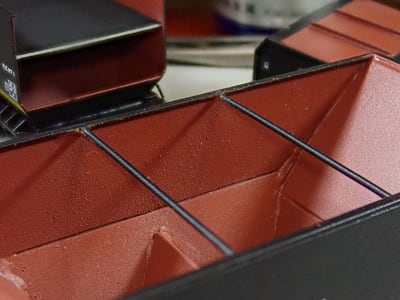 エナメルは「Xー18」セミグロスブラックです。 貨車の色艶はセムと同一ですが、ウェザリング前と後で区別しました。(あまり意味が無さそうですが)