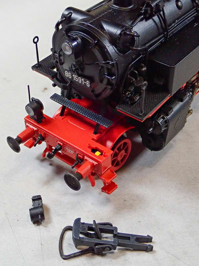 続いてBR86です。 前がわの連結器と連結器受けなど撤去して連結器やエアホースの交換をします。
