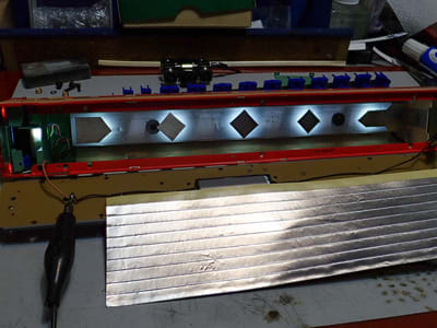 (中央のLEDはもっと激しく虐めるべきでした、基本的に全長21300mmの車両を照らすにはチップLED5個の照明板では長さ的に無理がありました・・・しかも位置が前に寄りすぎている)
