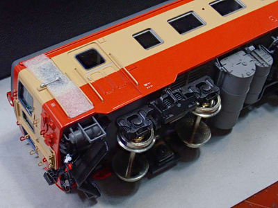 梯子やエアタンク、シリンダーなど黒塗りでなくてはいけないところがグレーです。 IMONのキハ58系同様塗装しなくてはなりません。