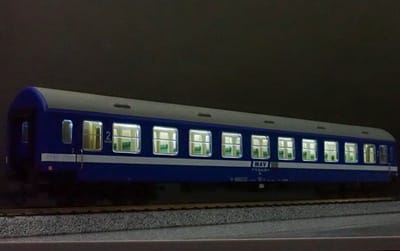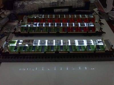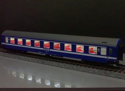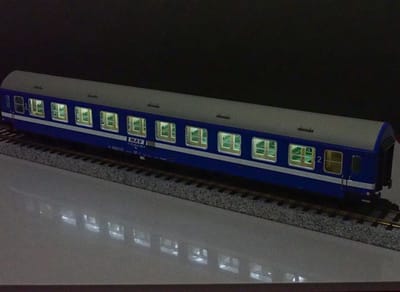 IMONパネルライトの光点ピッチとオハネフ12(このパネルライトの照明板は私自身がパネルライトに塗装した試作品でした)