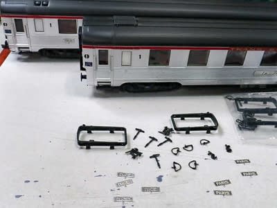 ラベルの絵を見るとこちら側が機関車側に書かれていますので、幌を畳んだ姿のものに幌吊りとともに交換します。