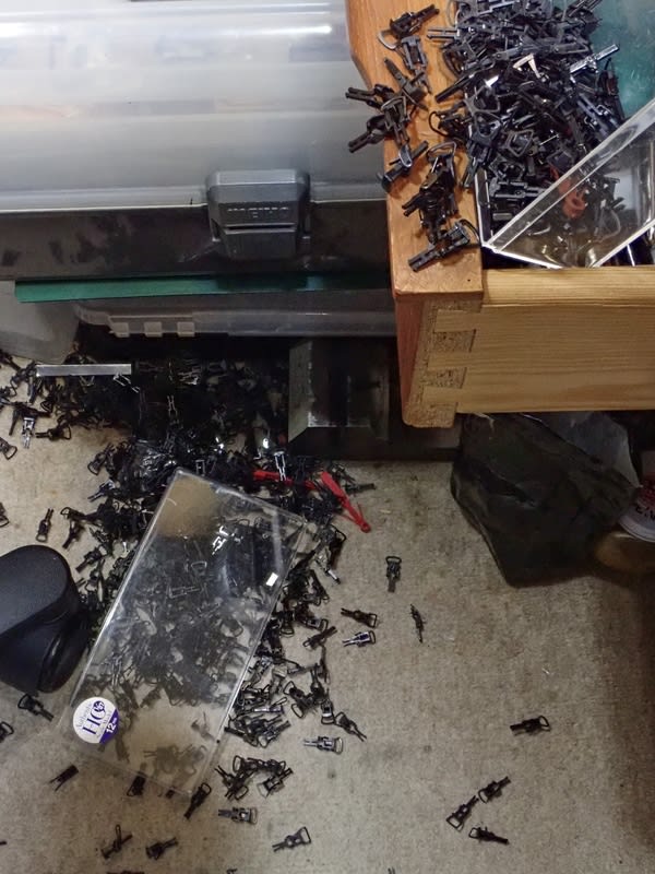 ついでに交換済みカプラーを入れてある箱を落として大惨事です。