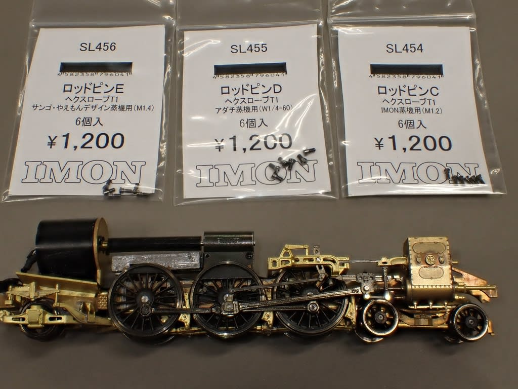 これはアダチの動輪です。 ロッドピンはW1/4−60というインチネジです。 マイナスネジでも六角ナットでもないへクスロープという頭の低いロッド固定用ネジです。