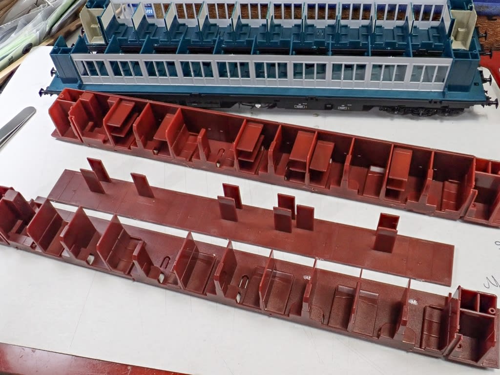 元々、最後の2両の二等車を仕上げるにあたって、缶スプレー作業をするのに「ついで」の吹き付けができると合理的だなと思って寝台車をバラしたのです。
