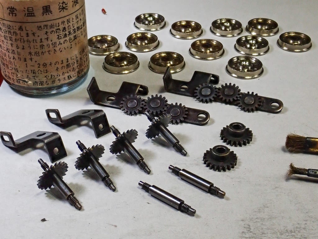 黒染めは染めた後も置いておく、洗ったり擦ったりしないのも教科書的ですが、可動部分は指や歯ブラシで磨いて黒ツヤに仕上げます。