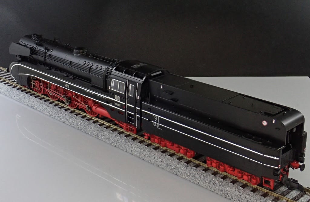 BR10(ドイツ式に「10形」を表現する言い方)は戦後1957年に製造された機関車で、西ドイツの01形や01−10形の改良型載せ替え用ボイラーを最初から備え、高速運転時の風による冷却からシリンダーを守るために流線型になっています。